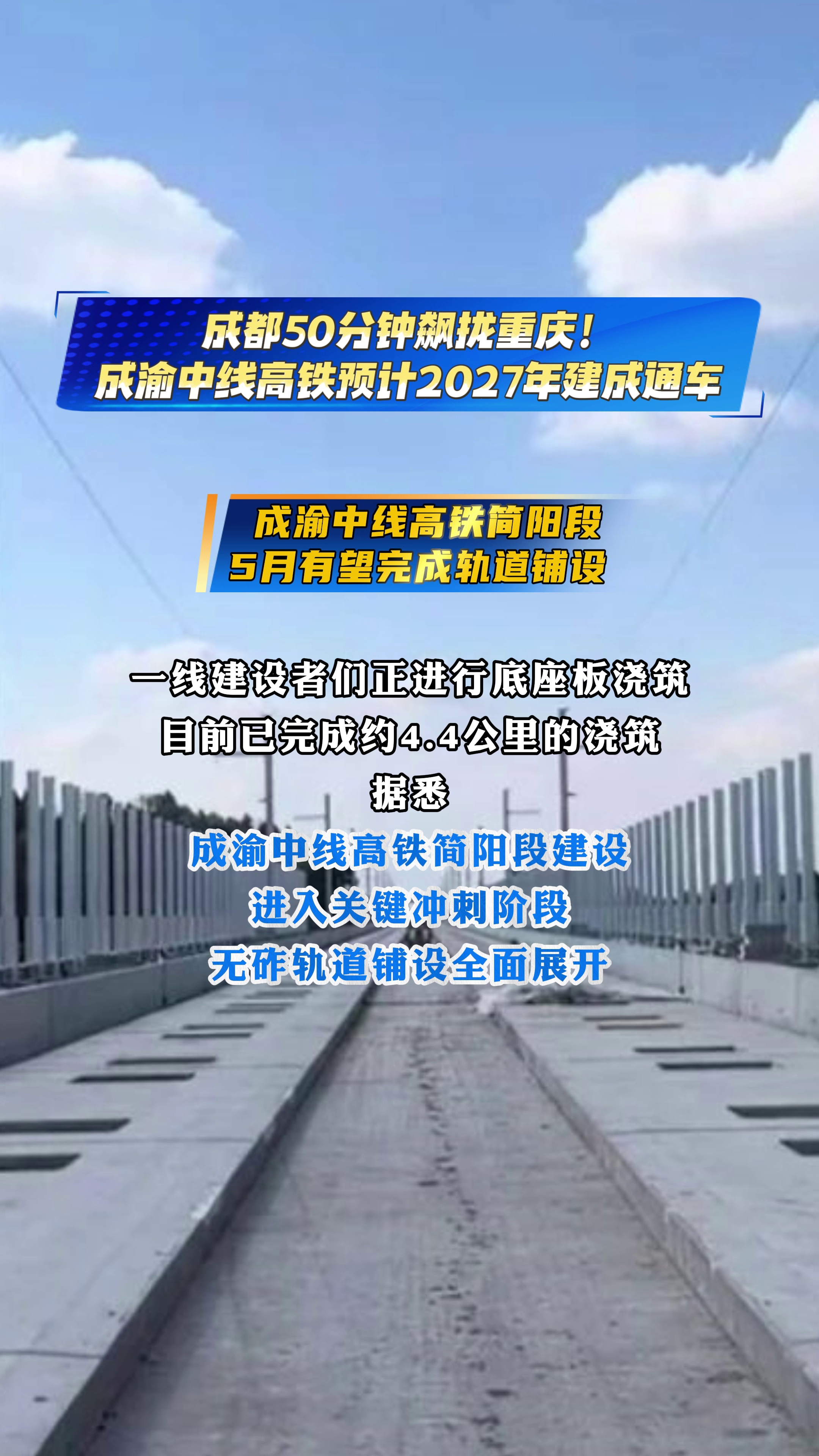 #成都 未来50分钟飙拢#重庆 !#成渝中线高铁 简阳段5月有望完成轨道铺设