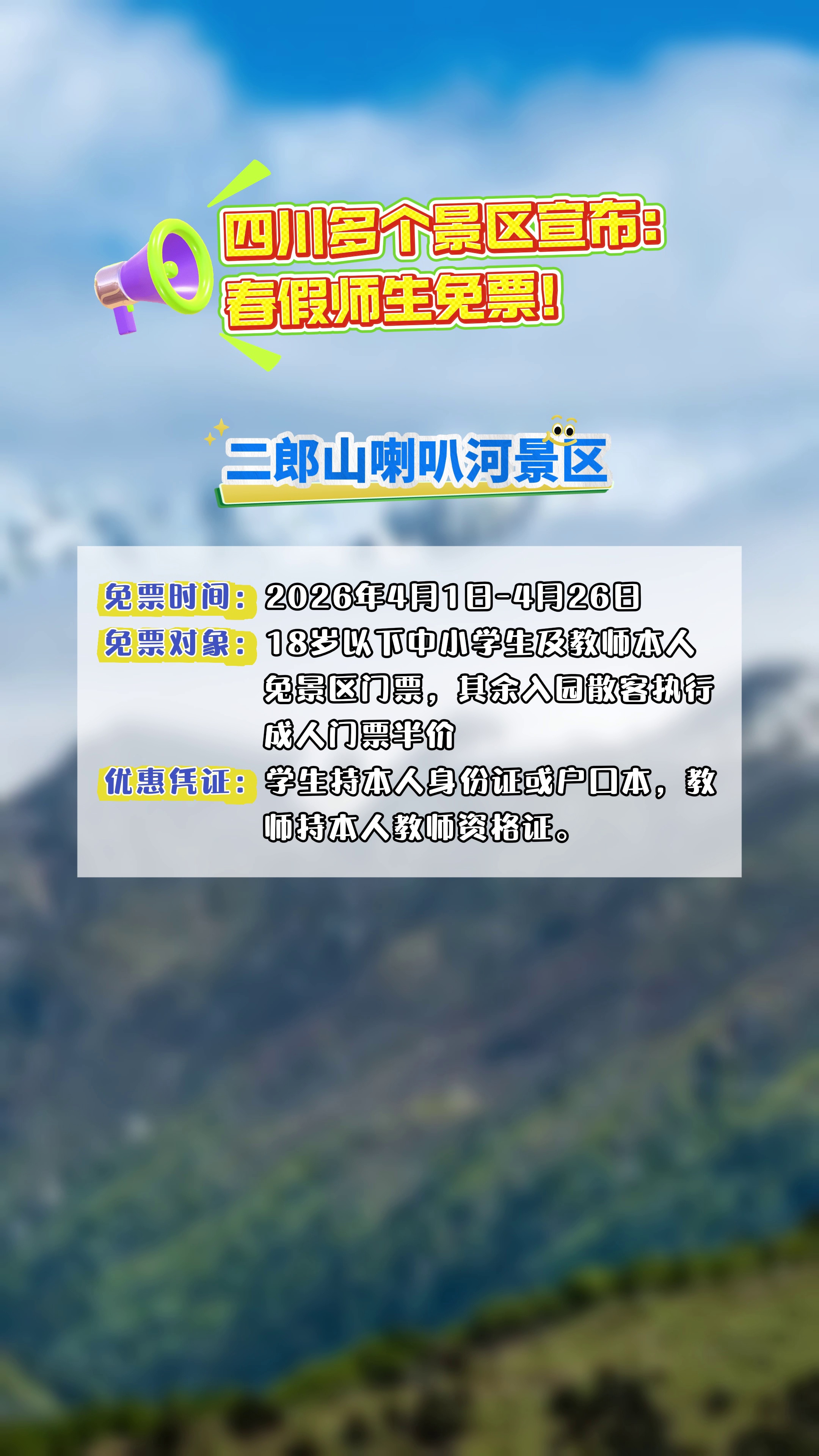 #四川 多个景区宣布:#春假 师生免票!